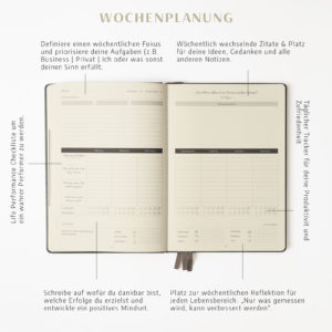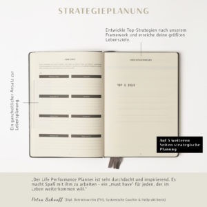 Der Life Performance Planner Classic ist ein hervorragendes System, welches dir hilft ein Leben zu kreieren, das nach deinen Maßstäben inspirierend und erstrebenswert ist. Dieser Lebensplaner lässt kaum Wünsche offen und verfolgt einen ganzheitlichen Ansatz in der Lebensplanung. Ein System, das jährlich von vielen tausenden aufstrebenden Menschen genutzt wird. Er sorgt für viel Klarheit in allen Lebensbereichen und schafft den Rahmen zur erfolgreichen Umsetzung deiner Träume und Ziele.